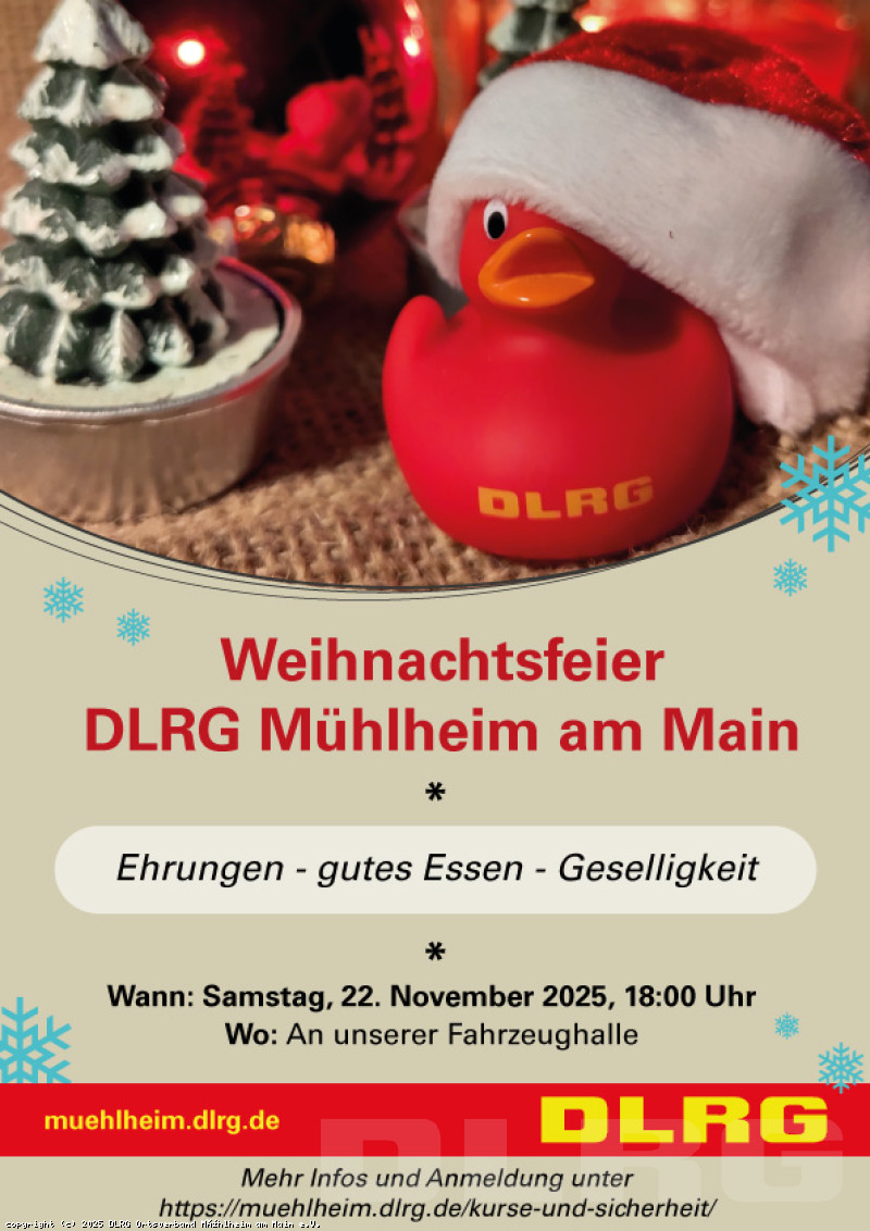 Für eine bessere Planung, würden wir uns über eine kurze Rückmeldung freuen. Meldet euch dafür bitte unter folgendem Link an: Anmeldung | DLRG Ortsverband Mühlheim am Main e.V.. Im Feld "Bemerkung für den Veranstalter" könnt ihr noch extra Personen benennen. Damit es ein rundum schöner Abend wird, freuen wir uns, wenn ihr etwas zum Buffet oder zur Stimmung beitragt. Eine Liste mit Dingen, die gerne mitgebracht werden können, findet ihr hier: DLRG Weihnachtsfeier Mitbringliste